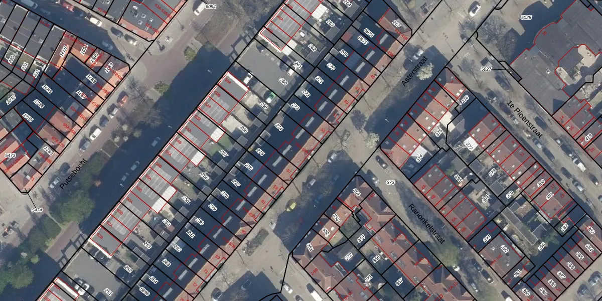 Het perceel waarop Asterstraat 55-A staat heeft een oppervlakte van 210 m². Dit is een middelgroot perceel. De perceeloppervlakte wordt geregistreerd door het Kadaster. Gedetailleerde informatie over de maten van dit perceel kunt u vinden in het rapport Kadastrale kaart met maatvoering van Asterstraat 55-A.
