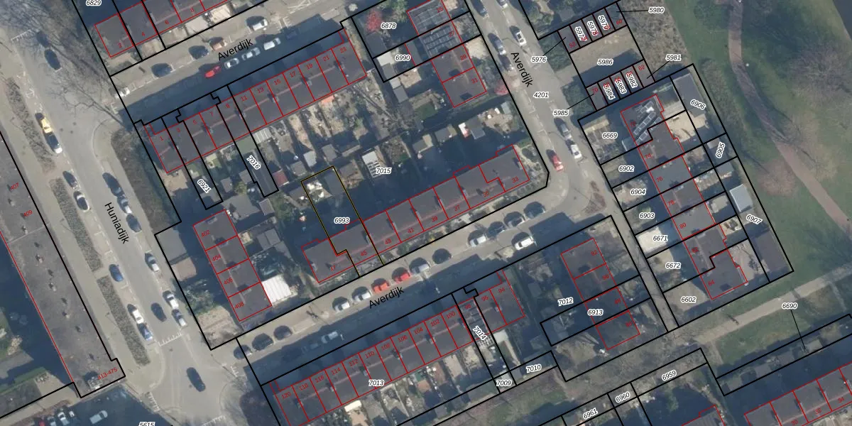 Averdijk 39 is gelegen op kadastraal perceel ISM01B7015. Deze kadastrale aanduiding is uniek en wordt gebruikt door het Kadaster om eigendomsrechten en andere zakelijke rechten vast te leggen. Het perceel maakt onderdeel uit van de kadastrale gemeente IJsselmonde.