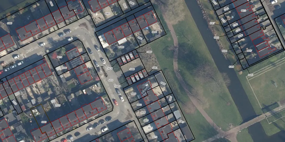 Het perceel waarop Averdijk 62 staat heeft een oppervlakte van 19 m². Dit is een klein perceel. De perceeloppervlakte wordt geregistreerd door het Kadaster. Gedetailleerde informatie over de maten van dit perceel kunt u vinden in het rapport Kadastrale kaart met maatvoering van Averdijk 62.