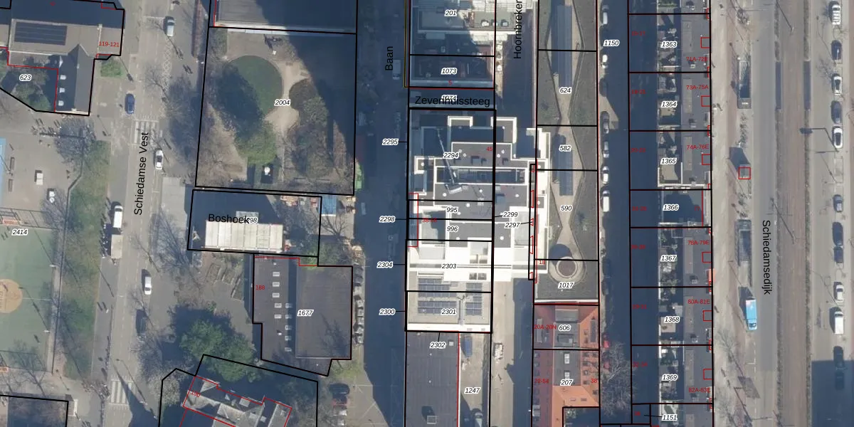 Het perceel waarop het adres ligt is RTD04-AG-995. De afkorting 'RTD04' staat voor kadastrale gemeente Rotterdam. Het perceel is kleiner dan gemiddeld in Rotterdam. Het perceel is 84 m² groot, terwijl het gemiddelde ligt op 1239,97 m². Het kleinste perceel in de kadastrale gemeente is 0 m² groot. De grootste perceeloppervlakte is 17,3 ha. Op het perceel zijn 282 adressen aanwezig. In de Basisregistratie Kadaster (BRK) werden de grenzen van het perceel geregistreerd op 01-10-2007.