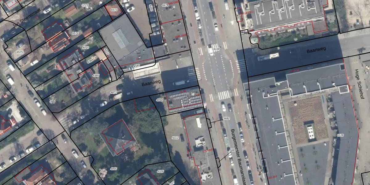 Baanweg 9-B is gelegen op kadastraal perceel OVS00C4894. Deze kadastrale aanduiding is uniek en wordt gebruikt door het Kadaster om eigendomsrechten en andere zakelijke rechten vast te leggen. Het perceel maakt onderdeel uit van de kadastrale gemeente Overschie.