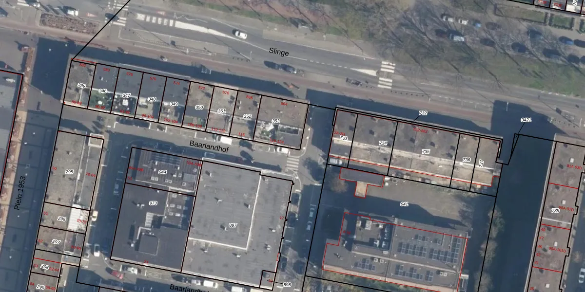 Baarlandhof 124 is gelegen op kadastraal perceel CLS00L353. Deze kadastrale aanduiding is uniek en wordt gebruikt door het Kadaster om eigendomsrechten en andere zakelijke rechten vast te leggen. Het perceel maakt onderdeel uit van de kadastrale gemeente Charlois.