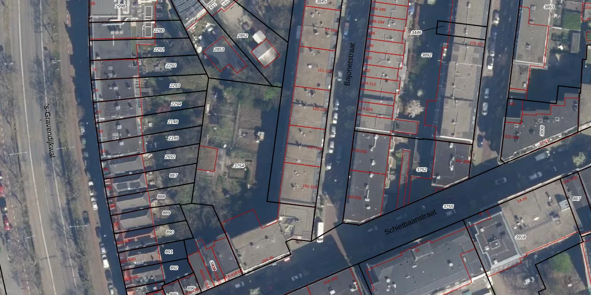 Het perceel waarop Bajonetstraat 147 staat heeft een oppervlakte van 2479 m². Dit is een zeer groot perceel. De perceeloppervlakte wordt geregistreerd door het Kadaster. Gedetailleerde informatie over de maten van dit perceel kunt u vinden in het rapport Kadastrale kaart met maatvoering van Bajonetstraat 147.