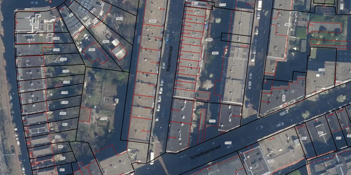 Het perceel waarop Bajonetstraat 216 staat heeft een oppervlakte van 2064 m². Dit is een zeer groot perceel. De perceeloppervlakte wordt geregistreerd door het Kadaster. Gedetailleerde informatie over de maten van dit perceel kunt u vinden in het rapport Kadastrale kaart met maatvoering van Bajonetstraat 216.