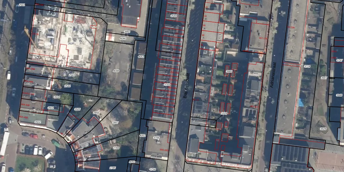 Het perceel waarop Bajonetstraat 29-A staat heeft een oppervlakte van 1055 m². Dit is een zeer groot perceel. De perceeloppervlakte wordt geregistreerd door het Kadaster. Gedetailleerde informatie over de maten van dit perceel kunt u vinden in het rapport Kadastrale kaart met maatvoering van Bajonetstraat 29-A.