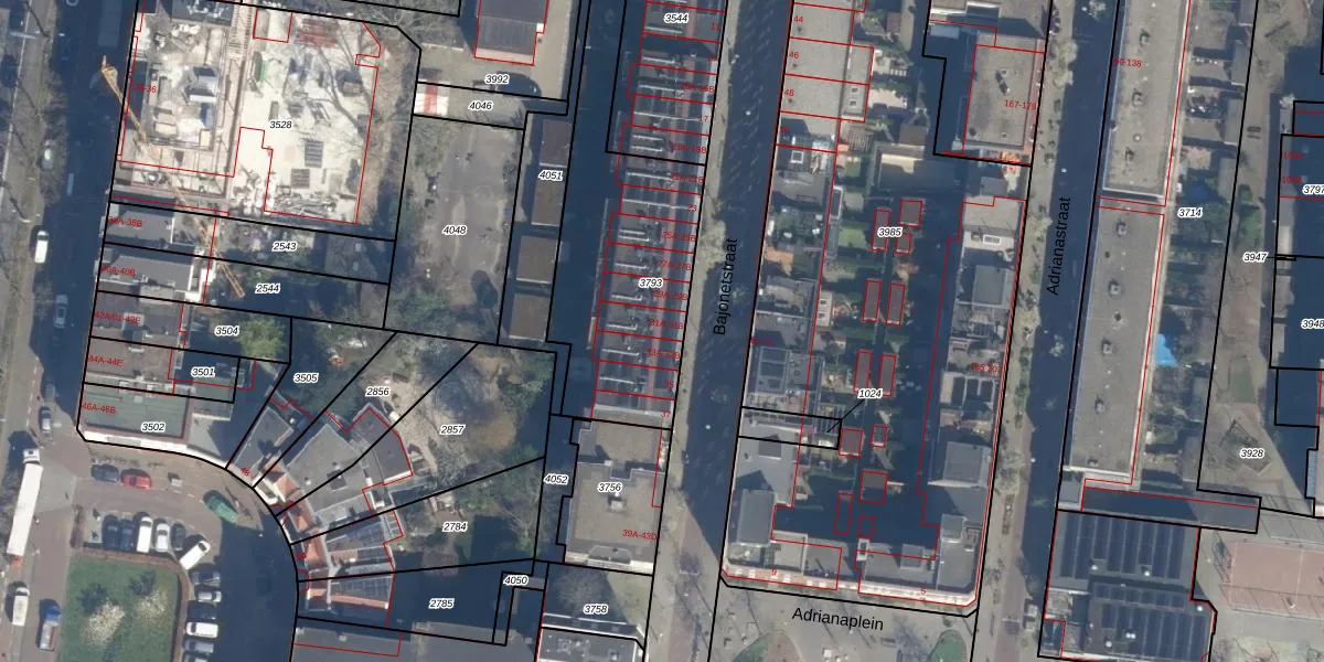 Het perceel waarop Bajonetstraat 31-B staat heeft een oppervlakte van 1055 m². Dit is een zeer groot perceel. De perceeloppervlakte wordt geregistreerd door het Kadaster. Gedetailleerde informatie over de maten van dit perceel kunt u vinden in het rapport Kadastrale kaart met maatvoering van Bajonetstraat 31-B.