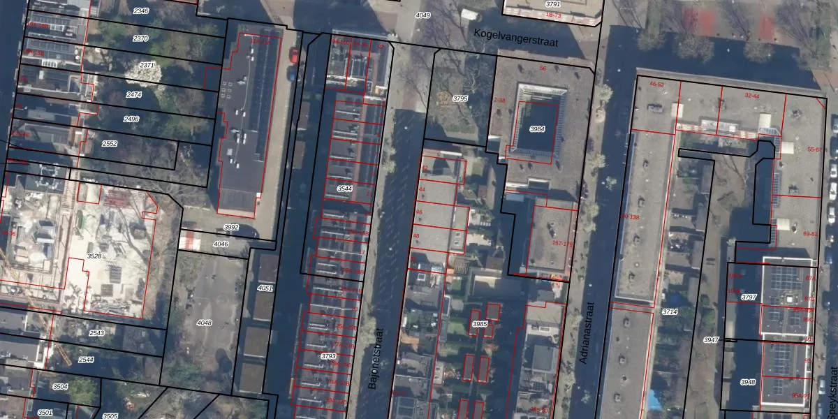 Het perceel waarop Bajonetstraat 46 staat heeft een oppervlakte van 3204 m². Dit is een zeer groot perceel. De perceeloppervlakte wordt geregistreerd door het Kadaster. Gedetailleerde informatie over de maten van dit perceel kunt u vinden in het rapport Kadastrale kaart met maatvoering van Bajonetstraat 46.