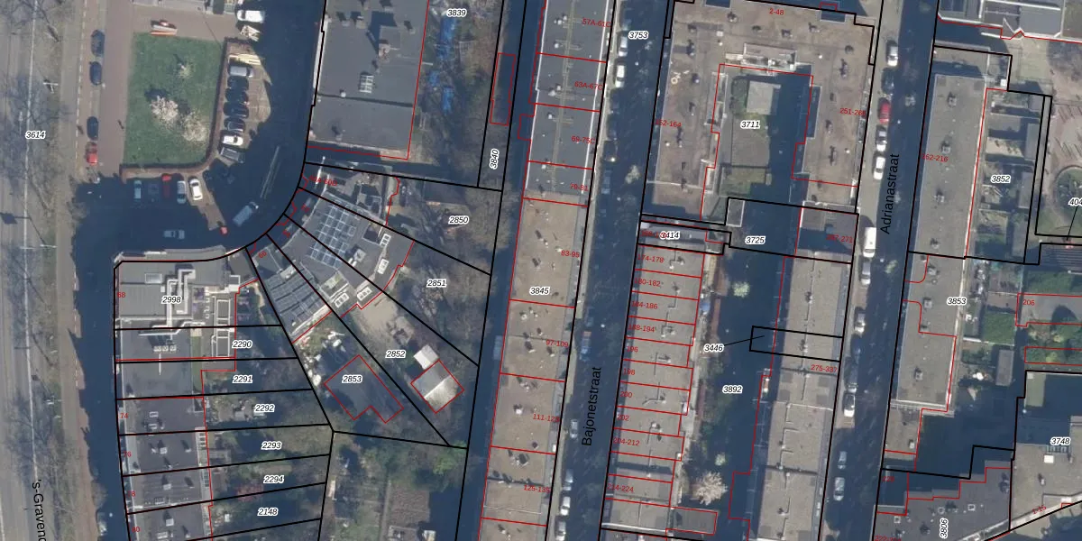 Het perceel waarop Bajonetstraat 89 staat heeft een oppervlakte van 2479 m². Dit is een zeer groot perceel. De perceeloppervlakte wordt geregistreerd door het Kadaster. Gedetailleerde informatie over de maten van dit perceel kunt u vinden in het rapport Kadastrale kaart met maatvoering van Bajonetstraat 89.