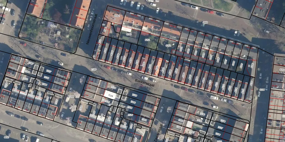 Het perceel waarop Bakkerstraat 33-B staat heeft een oppervlakte van 87 m². Dit is een klein perceel. De perceeloppervlakte wordt geregistreerd door het Kadaster. Gedetailleerde informatie over de maten van dit perceel kunt u vinden in het rapport Kadastrale kaart met maatvoering van Bakkerstraat 33-B.
