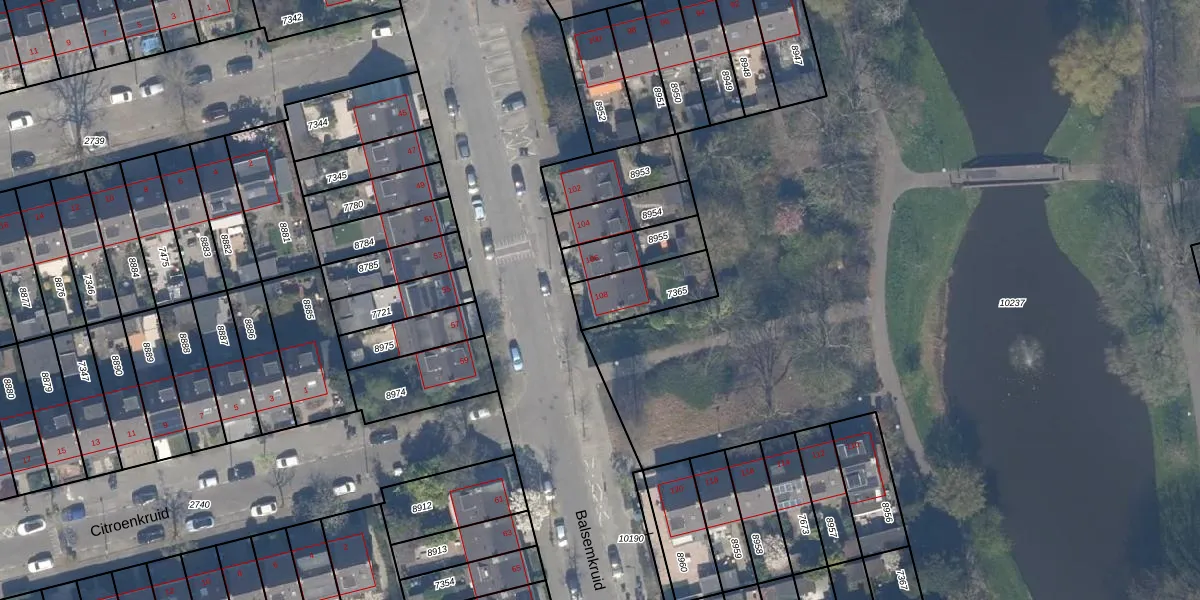 Het perceel waarop Balsemkruid 108 staat heeft een oppervlakte van 185 m². Dit is een middelgroot perceel. De perceeloppervlakte wordt geregistreerd door het Kadaster. Gedetailleerde informatie over de maten van dit perceel kunt u vinden in het rapport Kadastrale kaart met maatvoering van Balsemkruid 108.