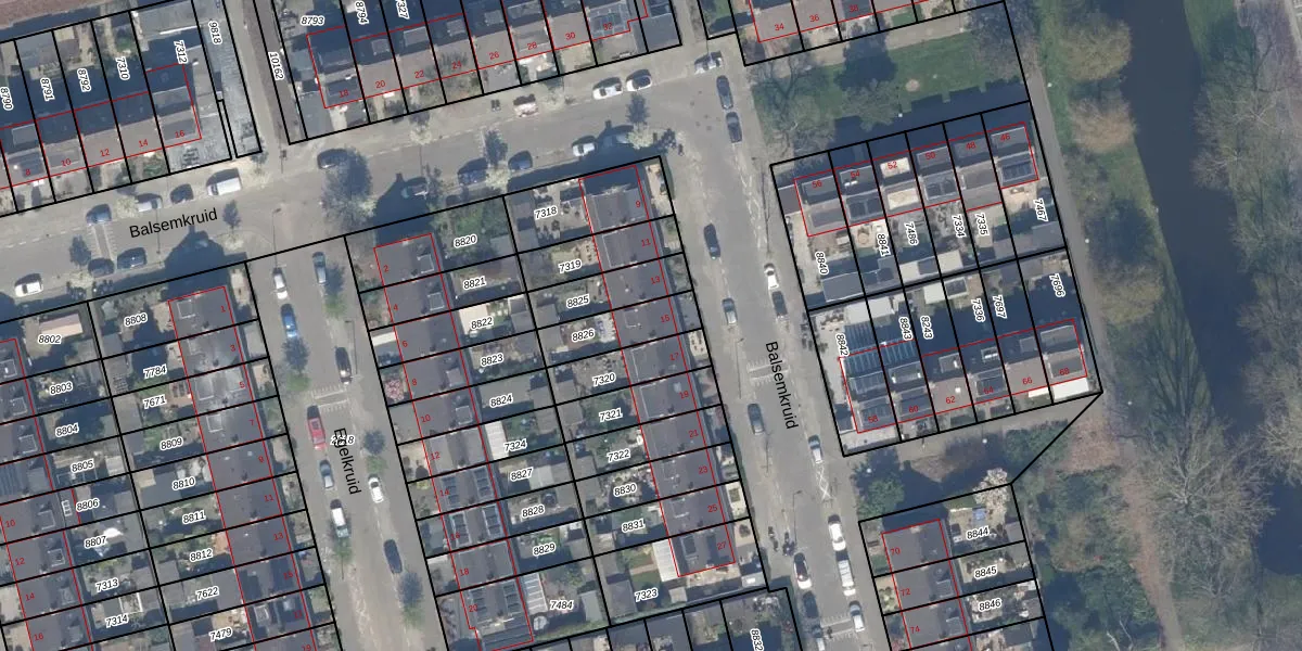 Het perceel waarop Balsemkruid 15 staat heeft een oppervlakte van 150 m². Dit is een middelgroot perceel. De perceeloppervlakte wordt geregistreerd door het Kadaster. Gedetailleerde informatie over de maten van dit perceel kunt u vinden in het rapport Kadastrale kaart met maatvoering van Balsemkruid 15.