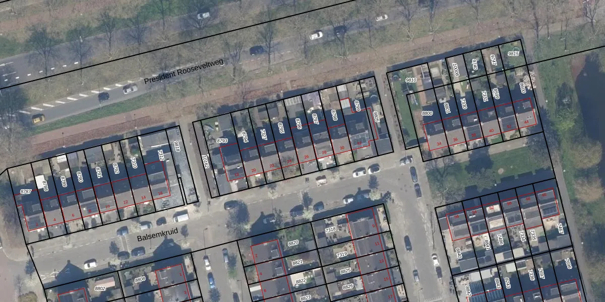 Het perceel waarop Balsemkruid 26 staat heeft een oppervlakte van 155 m². Dit is een middelgroot perceel. De perceeloppervlakte wordt geregistreerd door het Kadaster. Gedetailleerde informatie over de maten van dit perceel kunt u vinden in het rapport Kadastrale kaart met maatvoering van Balsemkruid 26.