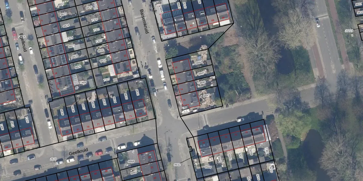 Het perceel waarop Balsemkruid 74 staat heeft een oppervlakte van 145 m². Dit is een middelgroot perceel. De perceeloppervlakte wordt geregistreerd door het Kadaster. Gedetailleerde informatie over de maten van dit perceel kunt u vinden in het rapport Kadastrale kaart met maatvoering van Balsemkruid 74.