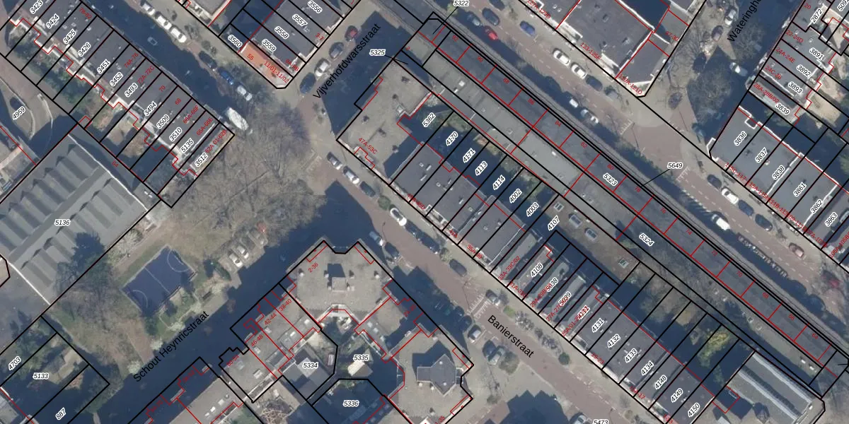 Het perceel waarop Banierstraat 45-B staat heeft een oppervlakte van 125 m². Dit is een middelgroot perceel. De perceeloppervlakte wordt geregistreerd door het Kadaster. Gedetailleerde informatie over de maten van dit perceel kunt u vinden in het rapport Kadastrale kaart met maatvoering van Banierstraat 45-B.