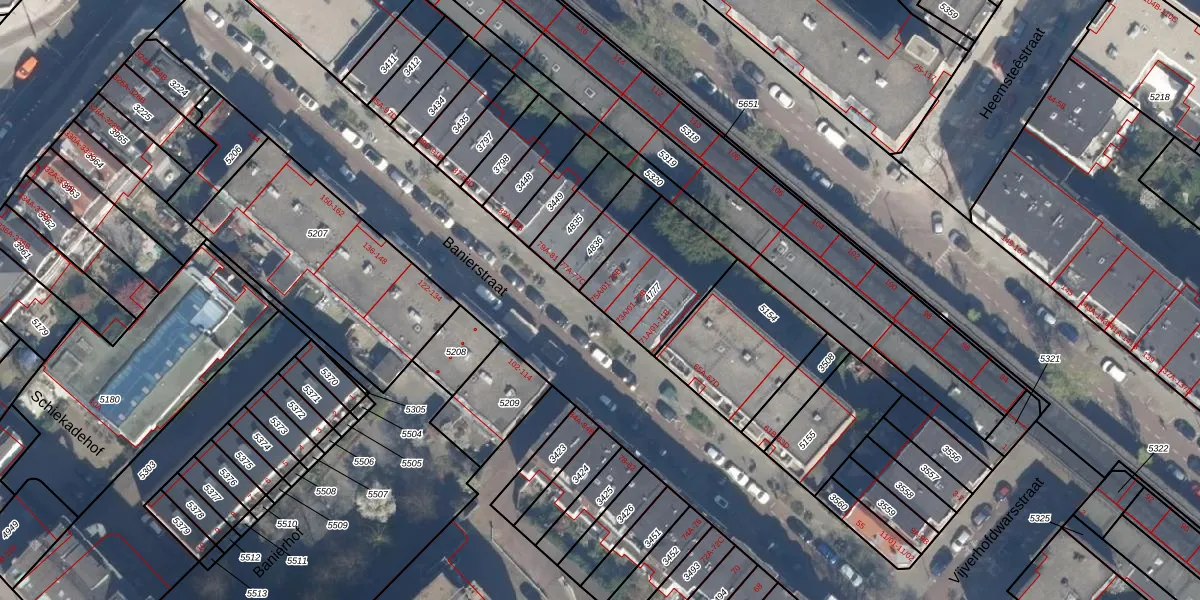 Het perceel waarop Banierstraat 75-A-01 staat heeft een oppervlakte van 357 m². Dit is een groot perceel. De perceeloppervlakte wordt geregistreerd door het Kadaster. Gedetailleerde informatie over de maten van dit perceel kunt u vinden in het rapport Kadastrale kaart met maatvoering van Banierstraat 75-A-01.