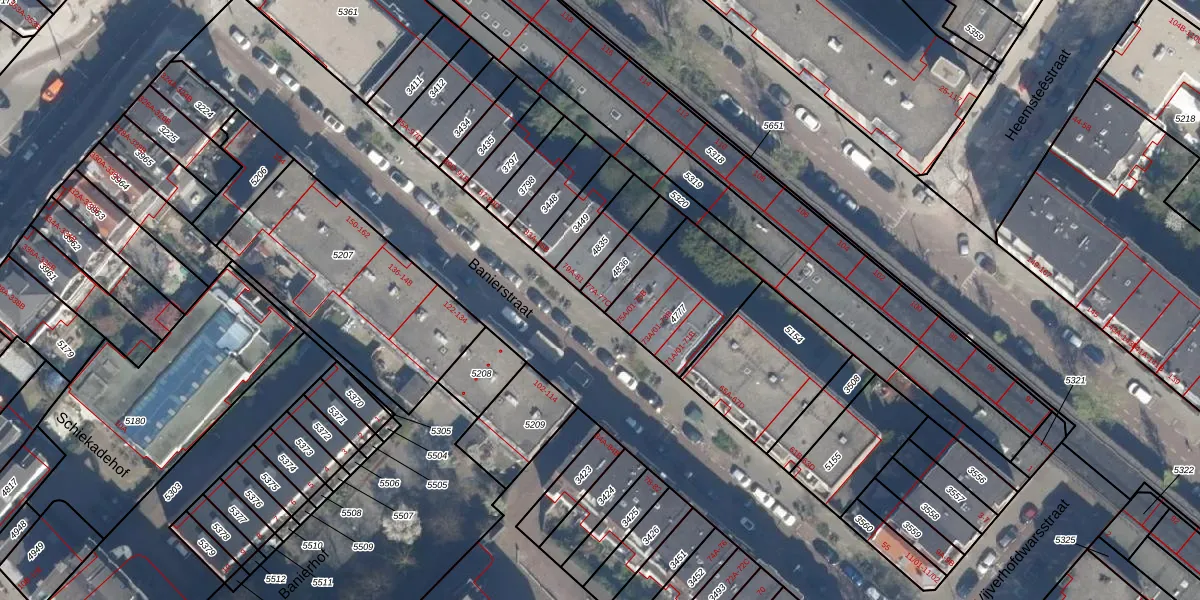 Het perceel waarop Banierstraat 77-C staat heeft een oppervlakte van 118 m². Dit is een middelgroot perceel. De perceeloppervlakte wordt geregistreerd door het Kadaster. Gedetailleerde informatie over de maten van dit perceel kunt u vinden in het rapport Kadastrale kaart met maatvoering van Banierstraat 77-C.
