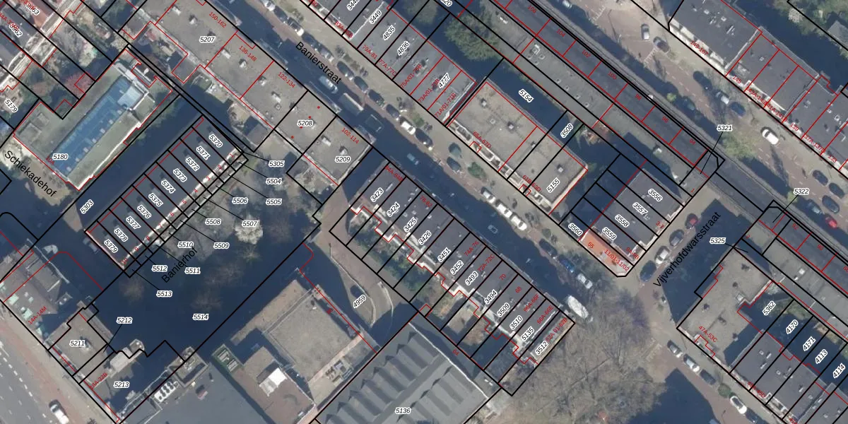 Banierstraat 80-B is gelegen op kadastraal perceel RTD08X3425. Deze kadastrale aanduiding is uniek en wordt gebruikt door het Kadaster om eigendomsrechten en andere zakelijke rechten vast te leggen. Het perceel maakt onderdeel uit van de kadastrale gemeente Rotterdam.