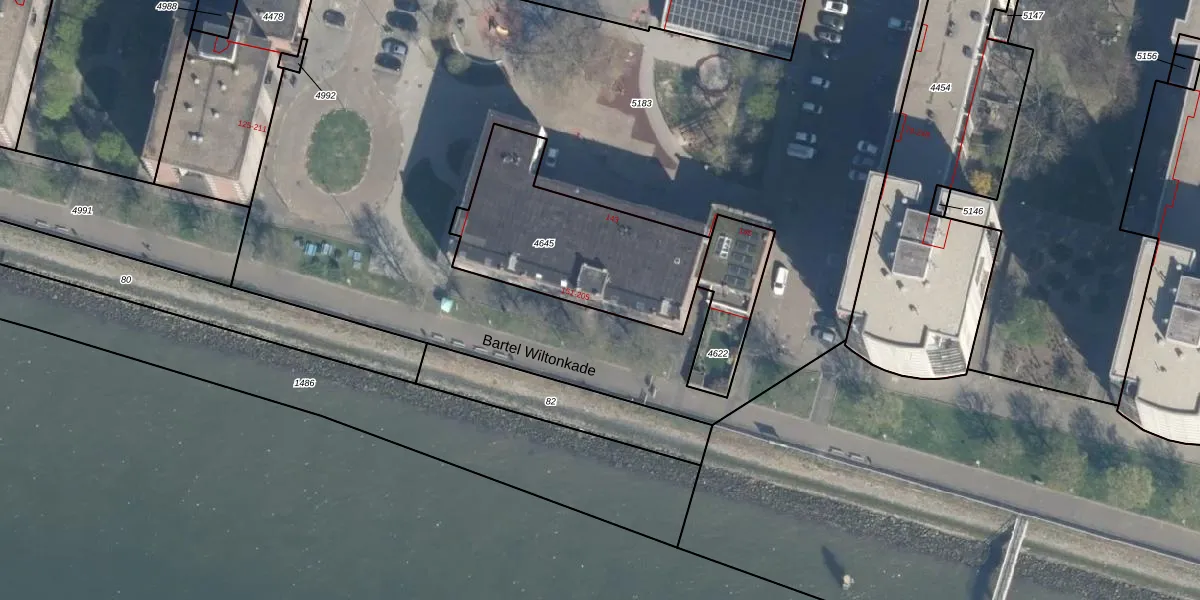 Bartel Wiltonkade 159 is gelegen op kadastraal perceel DHV00H4645. Deze kadastrale aanduiding is uniek en wordt gebruikt door het Kadaster om eigendomsrechten en andere zakelijke rechten vast te leggen. Het perceel maakt onderdeel uit van de kadastrale gemeente Delfshaven.