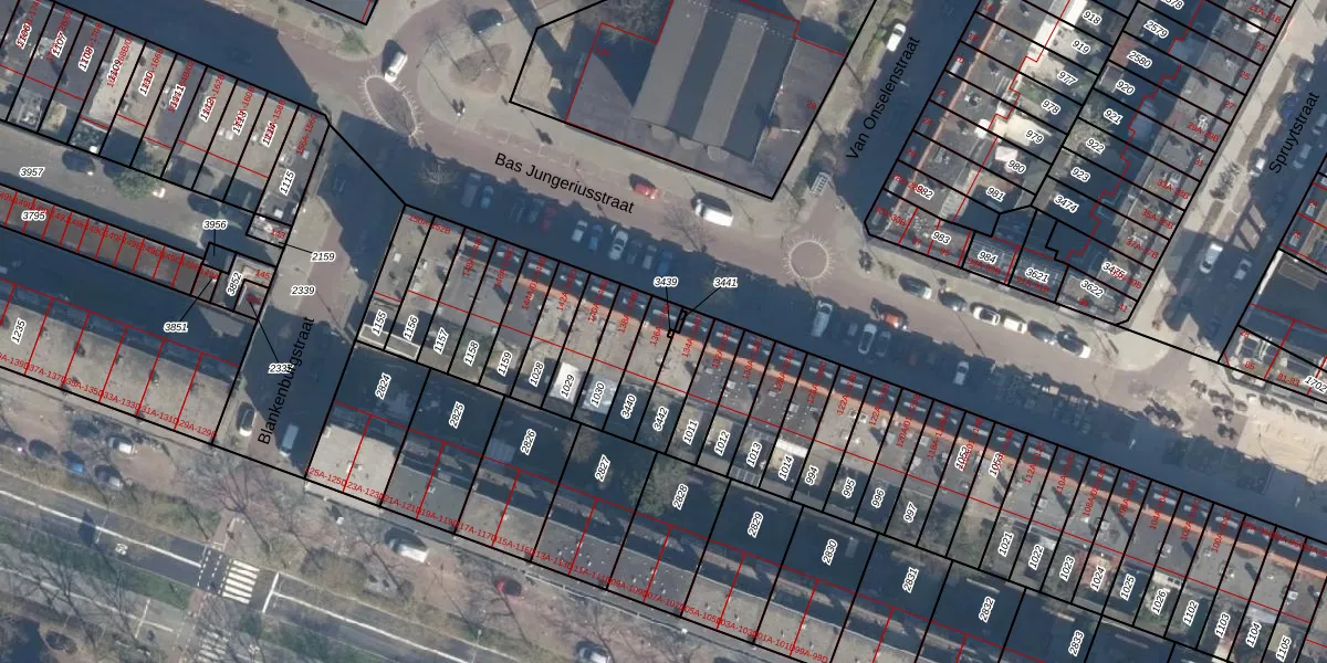 Bas Jungeriusstraat 136-B is gelegen op kadastraal perceel CLS00H3440. Deze kadastrale aanduiding is uniek en wordt gebruikt door het Kadaster om eigendomsrechten en andere zakelijke rechten vast te leggen. Het perceel maakt onderdeel uit van de kadastrale gemeente Charlois.
