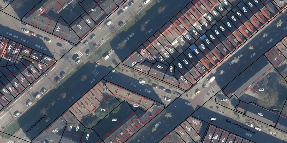 Bas Jungeriusstraat 165-A is gelegen op kadastraal perceel CLS00E3789. Deze kadastrale aanduiding is uniek en wordt gebruikt door het Kadaster om eigendomsrechten en andere zakelijke rechten vast te leggen. Het perceel maakt onderdeel uit van de kadastrale gemeente Charlois.