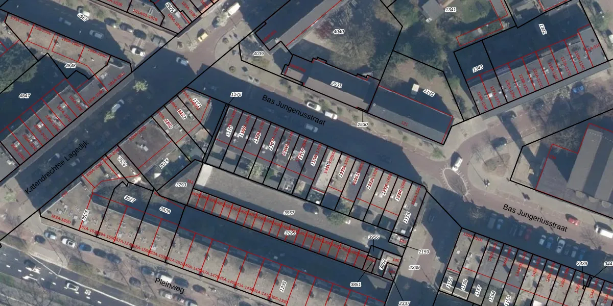 Bas Jungeriusstraat 172-A is gelegen op kadastraal perceel CLS00H1107. Deze kadastrale aanduiding is uniek en wordt gebruikt door het Kadaster om eigendomsrechten en andere zakelijke rechten vast te leggen. Het perceel maakt onderdeel uit van de kadastrale gemeente Charlois.