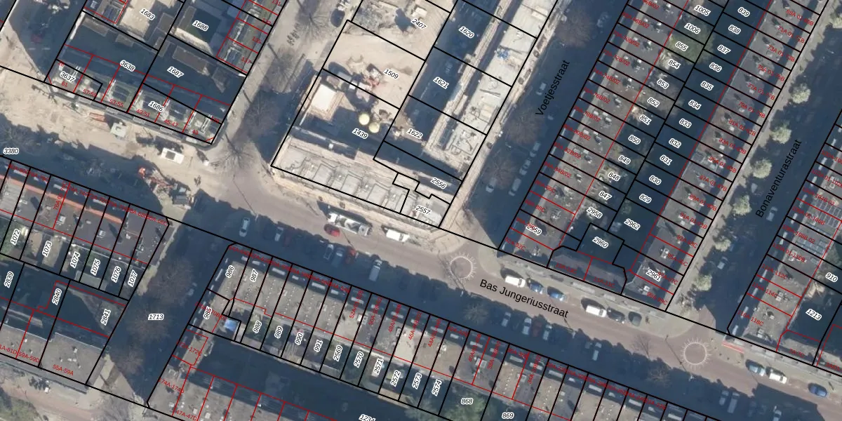 Bas Jungeriusstraat 21 is gelegen op kadastraal perceel CLS00H2557. Deze kadastrale aanduiding is uniek en wordt gebruikt door het Kadaster om eigendomsrechten en andere zakelijke rechten vast te leggen. Het perceel maakt onderdeel uit van de kadastrale gemeente Charlois.