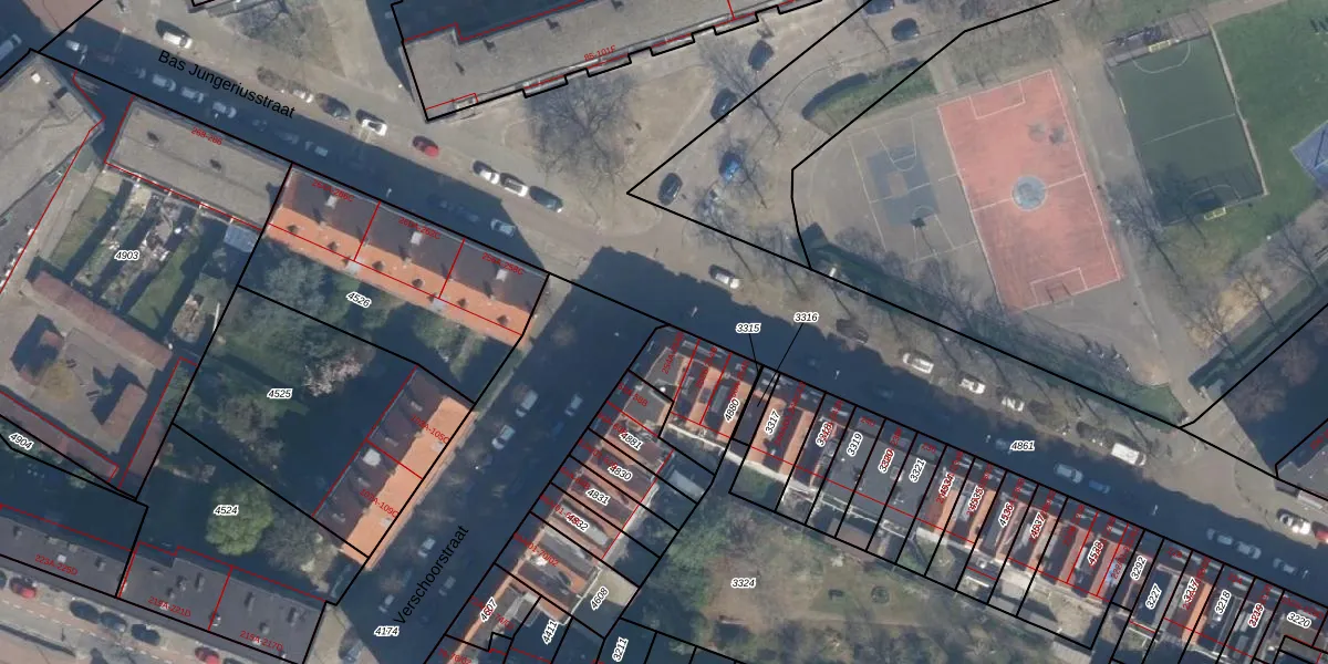 Bas Jungeriusstraat 250-B is gelegen op kadastraal perceel CLS00E4880. Deze kadastrale aanduiding is uniek en wordt gebruikt door het Kadaster om eigendomsrechten en andere zakelijke rechten vast te leggen. Het perceel maakt onderdeel uit van de kadastrale gemeente Charlois.