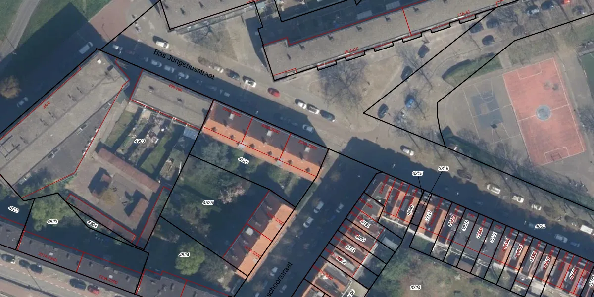 Bas Jungeriusstraat 258-C is gelegen op kadastraal perceel CLS00E4526. Deze kadastrale aanduiding is uniek en wordt gebruikt door het Kadaster om eigendomsrechten en andere zakelijke rechten vast te leggen. Het perceel maakt onderdeel uit van de kadastrale gemeente Charlois.