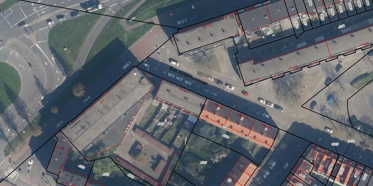 Bas Jungeriusstraat 272 is gelegen op kadastraal perceel CLS00E4903. Deze kadastrale aanduiding is uniek en wordt gebruikt door het Kadaster om eigendomsrechten en andere zakelijke rechten vast te leggen. Het perceel maakt onderdeel uit van de kadastrale gemeente Charlois.