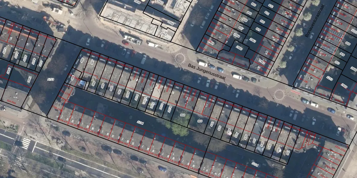 Bas Jungeriusstraat 42-A is gelegen op kadastraal perceel CLS00H2574. Deze kadastrale aanduiding is uniek en wordt gebruikt door het Kadaster om eigendomsrechten en andere zakelijke rechten vast te leggen. Het perceel maakt onderdeel uit van de kadastrale gemeente Charlois.
