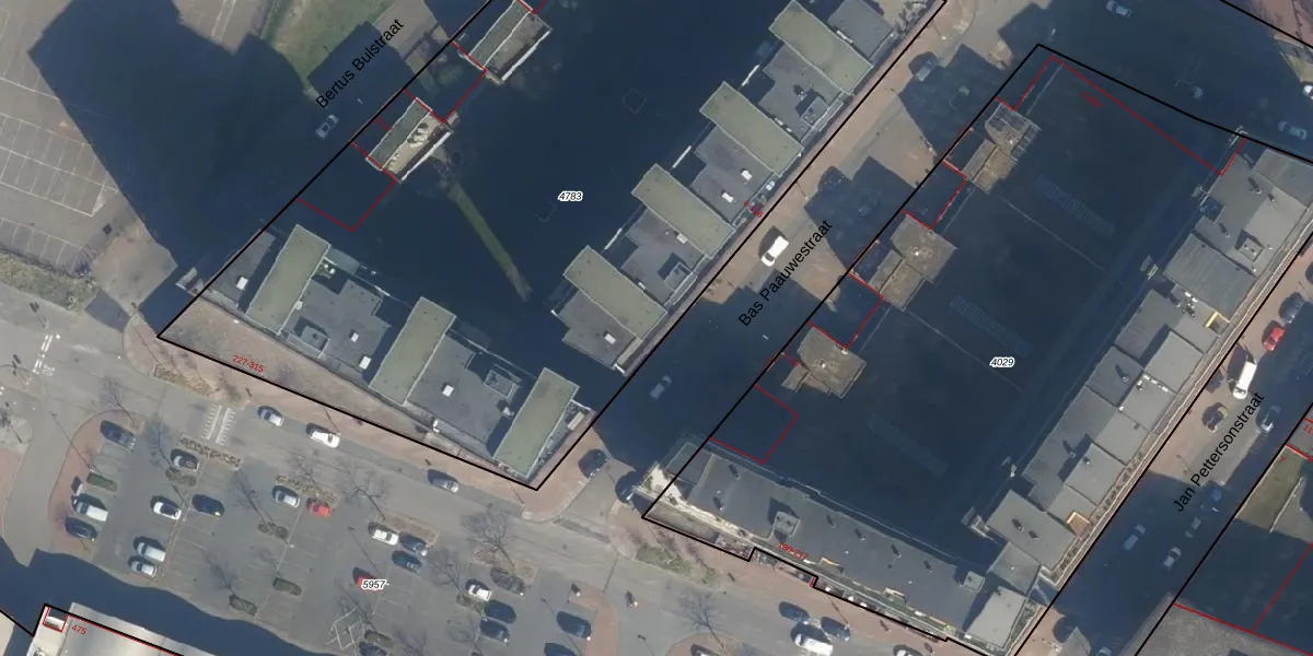 Het perceel waarop Bas Paauwestraat 38 staat heeft een oppervlakte van 5435 m². Dit is een zeer groot perceel. De perceeloppervlakte wordt geregistreerd door het Kadaster. Gedetailleerde informatie over de maten van dit perceel kunt u vinden in het rapport Kadastrale kaart met maatvoering van Bas Paauwestraat 38.