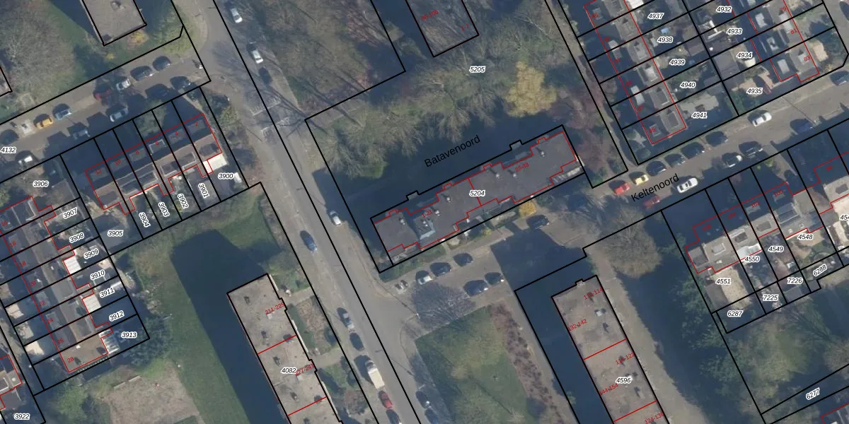 Het perceel waarop Batavenoord 9 staat heeft een oppervlakte van 627 m². Dit is een groot perceel. De perceeloppervlakte wordt geregistreerd door het Kadaster. Gedetailleerde informatie over de maten van dit perceel kunt u vinden in het rapport Kadastrale kaart met maatvoering van Batavenoord 9.