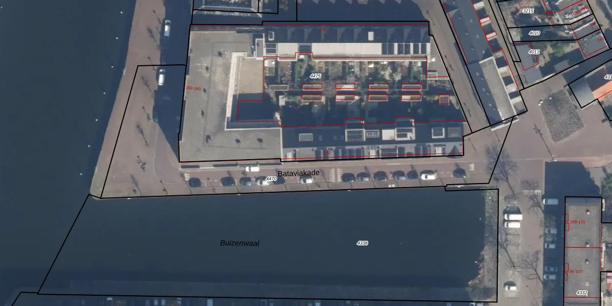 Bataviakade 22 is gelegen op kadastraal perceel DHV00A4475. Deze kadastrale aanduiding is uniek en wordt gebruikt door het Kadaster om eigendomsrechten en andere zakelijke rechten vast te leggen. Het perceel maakt onderdeel uit van de kadastrale gemeente Delfshaven.
