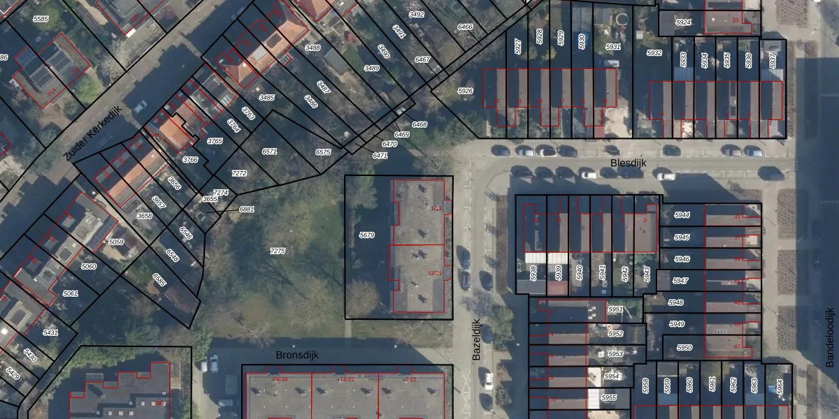 Het perceel waarop Bazeldijk 7 staat heeft een oppervlakte van 884 m². Dit is een groot perceel. De perceeloppervlakte wordt geregistreerd door het Kadaster. Gedetailleerde informatie over de maten van dit perceel kunt u vinden in het rapport Kadastrale kaart met maatvoering van Bazeldijk 7.