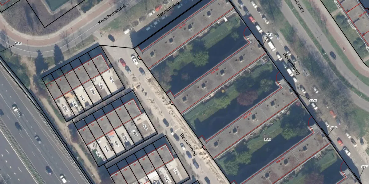Becramming 22-B is gelegen op kadastraal perceel OVS00C5841. Deze kadastrale aanduiding is uniek en wordt gebruikt door het Kadaster om eigendomsrechten en andere zakelijke rechten vast te leggen. Het perceel maakt onderdeel uit van de kadastrale gemeente Overschie.
