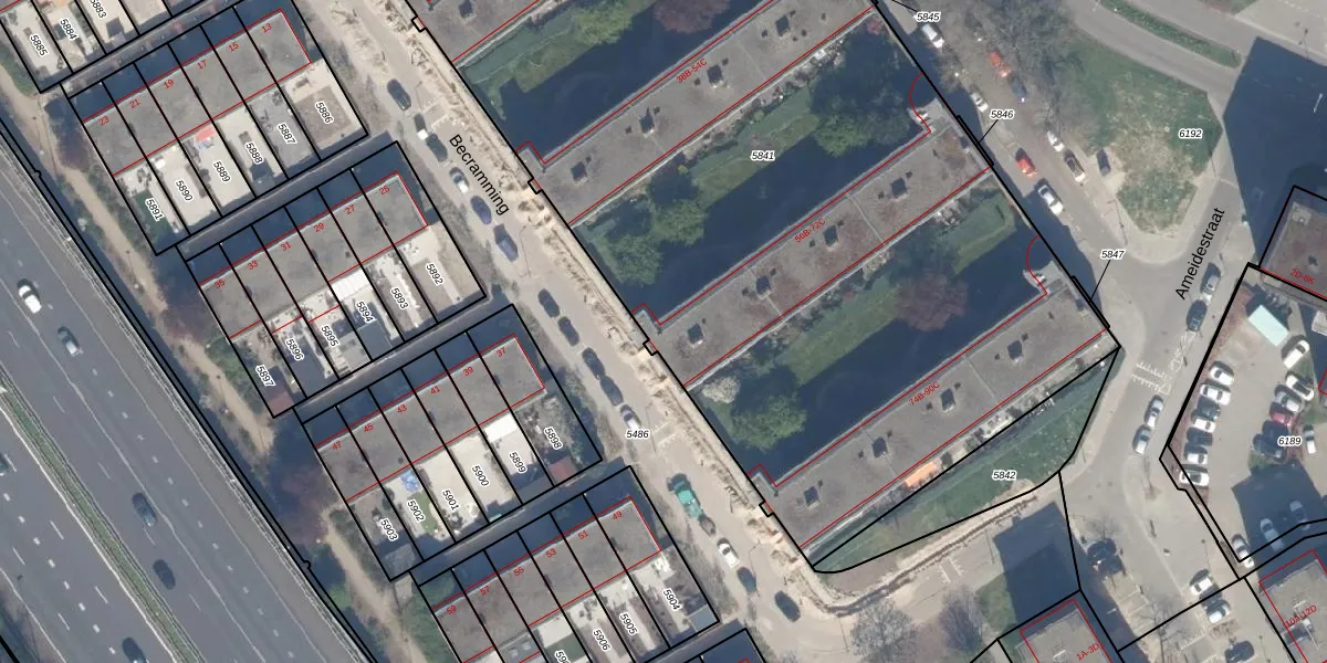 Becramming 56-C is gelegen op kadastraal perceel OVS00C5841. Deze kadastrale aanduiding is uniek en wordt gebruikt door het Kadaster om eigendomsrechten en andere zakelijke rechten vast te leggen. Het perceel maakt onderdeel uit van de kadastrale gemeente Overschie.