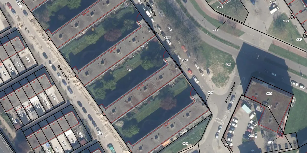 Het perceel waarop het adres ligt is OVS00-C-5841. De afkorting 'OVS00' staat voor kadastrale gemeente Overschie. Het perceel is met 7800 m² relatief groot. Het gemiddelde ligt in de kadastrale gemeente Overschie op 2519,31 m². De grootste perceeloppervlakte in de kadastrale gemeente is 80,2 ha. De kleinste oppervlakte bedraagt 0 m². Er zijn 125 adressen aanwezig op het perceel. In de Basisregistratie Kadaster (BRK) werden de grenzen van het perceel geregistreerd op 11-05-2011.