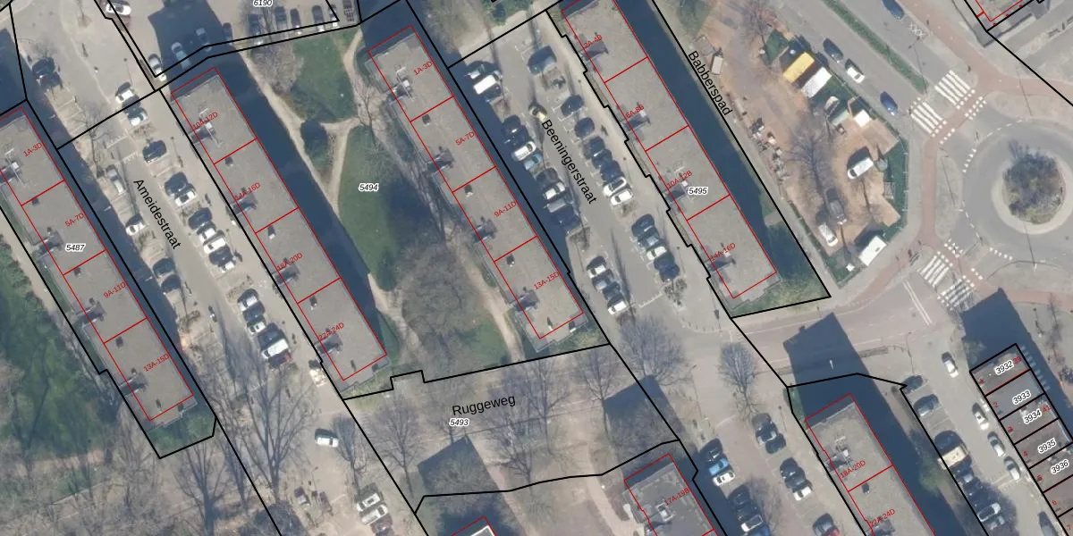 Beeningerstraat 13-A is gelegen op kadastraal perceel OVS00C5494. Deze kadastrale aanduiding is uniek en wordt gebruikt door het Kadaster om eigendomsrechten en andere zakelijke rechten vast te leggen. Het perceel maakt onderdeel uit van de kadastrale gemeente Overschie.
