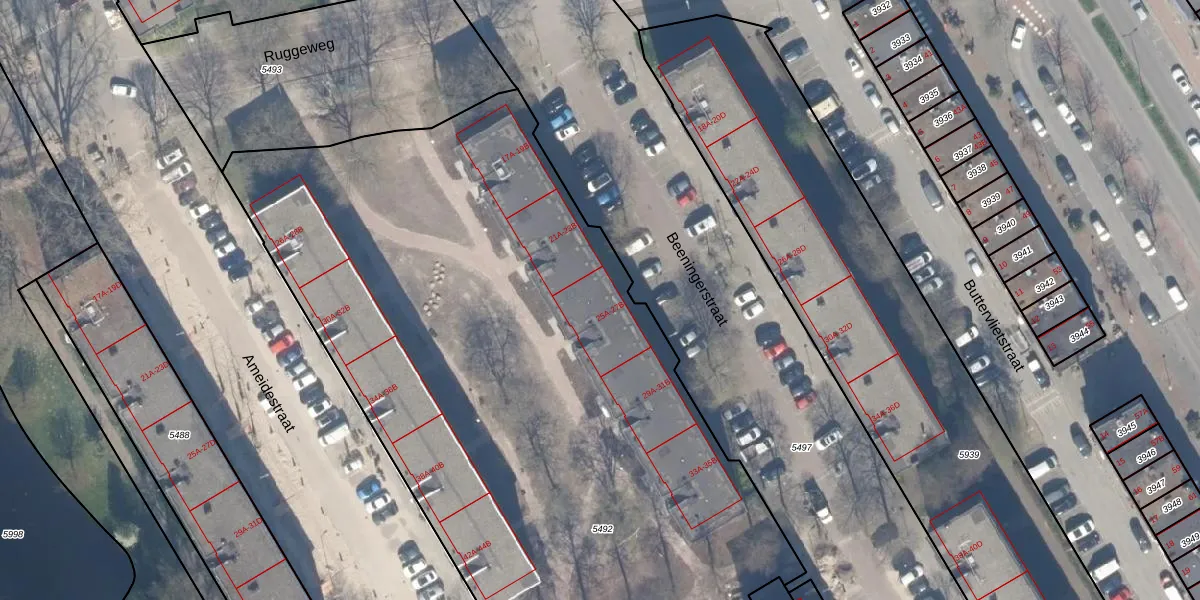 Beeningerstraat 25-B is gelegen op kadastraal perceel OVS00C5492. Deze kadastrale aanduiding is uniek en wordt gebruikt door het Kadaster om eigendomsrechten en andere zakelijke rechten vast te leggen. Het perceel maakt onderdeel uit van de kadastrale gemeente Overschie.