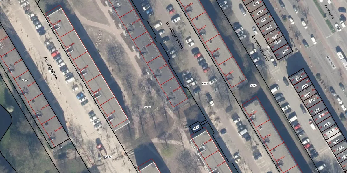 Beeningerstraat 33-B is gelegen op kadastraal perceel OVS00C5492. Deze kadastrale aanduiding is uniek en wordt gebruikt door het Kadaster om eigendomsrechten en andere zakelijke rechten vast te leggen. Het perceel maakt onderdeel uit van de kadastrale gemeente Overschie.