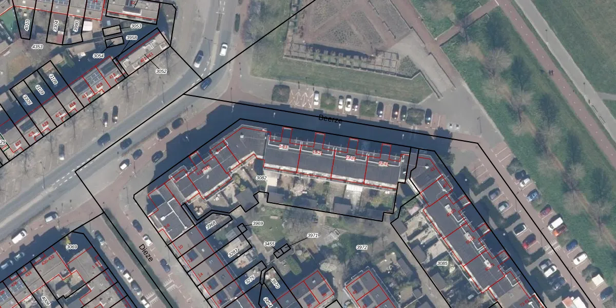 Het perceel waarop Beerze 15 staat heeft een oppervlakte van 2043 m². Dit is een zeer groot perceel. De perceeloppervlakte wordt geregistreerd door het Kadaster. Gedetailleerde informatie over de maten van dit perceel kunt u vinden in het rapport Kadastrale kaart met maatvoering van Beerze 15.