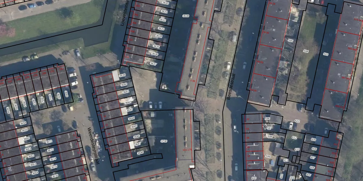 Beesdestraat 101 is gelegen op kadastraal perceel ISM01F3638. Deze kadastrale aanduiding is uniek en wordt gebruikt door het Kadaster om eigendomsrechten en andere zakelijke rechten vast te leggen. Het perceel maakt onderdeel uit van de kadastrale gemeente IJsselmonde.