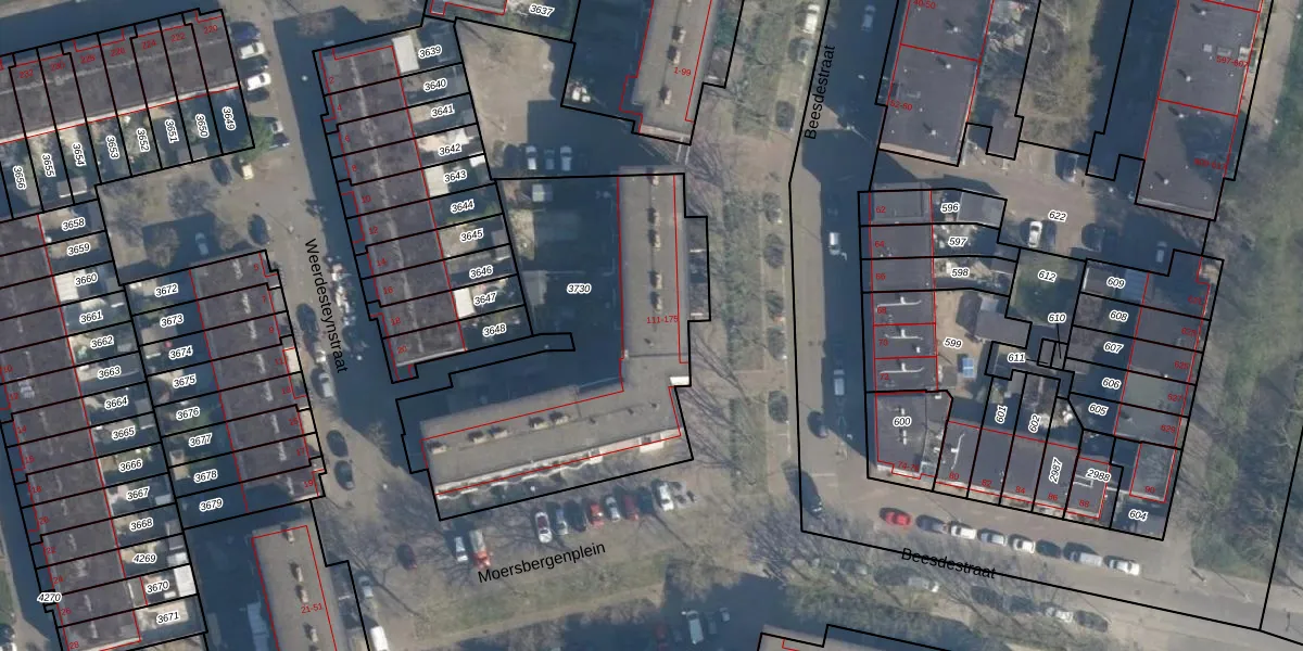 Beesdestraat 119 is gelegen op kadastraal perceel ISM01F3730. Deze kadastrale aanduiding is uniek en wordt gebruikt door het Kadaster om eigendomsrechten en andere zakelijke rechten vast te leggen. Het perceel maakt onderdeel uit van de kadastrale gemeente IJsselmonde.
