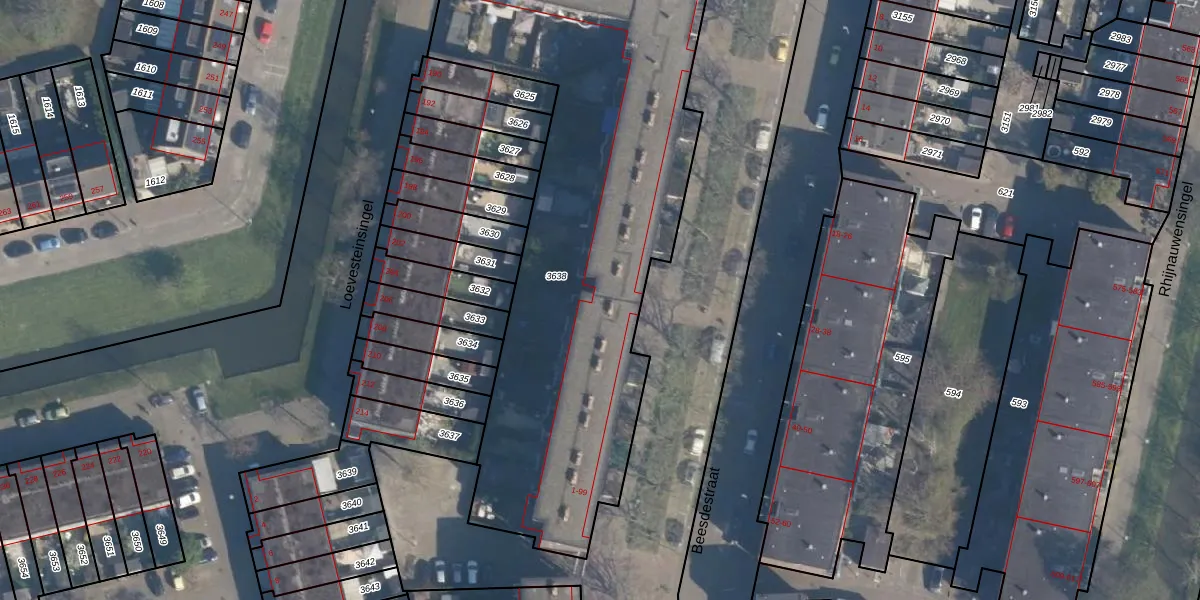 Beesdestraat 65 is gelegen op kadastraal perceel ISM01F3638. Deze kadastrale aanduiding is uniek en wordt gebruikt door het Kadaster om eigendomsrechten en andere zakelijke rechten vast te leggen. Het perceel maakt onderdeel uit van de kadastrale gemeente IJsselmonde.