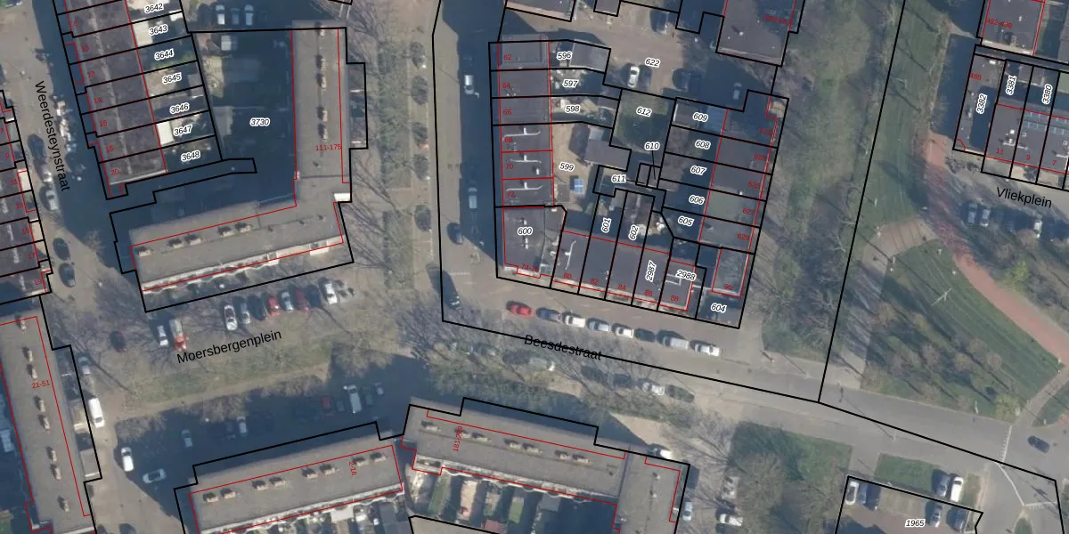 Beesdestraat 74 is gelegen op kadastraal perceel ISM01F600. Deze kadastrale aanduiding is uniek en wordt gebruikt door het Kadaster om eigendomsrechten en andere zakelijke rechten vast te leggen. Het perceel maakt onderdeel uit van de kadastrale gemeente IJsselmonde.
