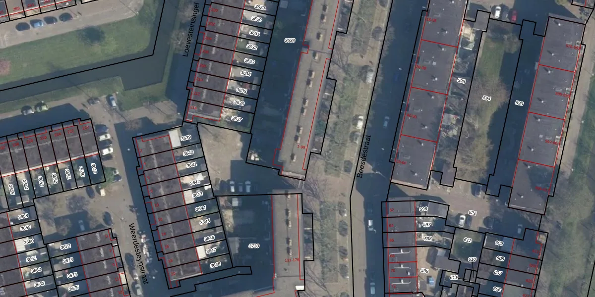 Beesdestraat 93 is gelegen op kadastraal perceel ISM01F3638. Deze kadastrale aanduiding is uniek en wordt gebruikt door het Kadaster om eigendomsrechten en andere zakelijke rechten vast te leggen. Het perceel maakt onderdeel uit van de kadastrale gemeente IJsselmonde.