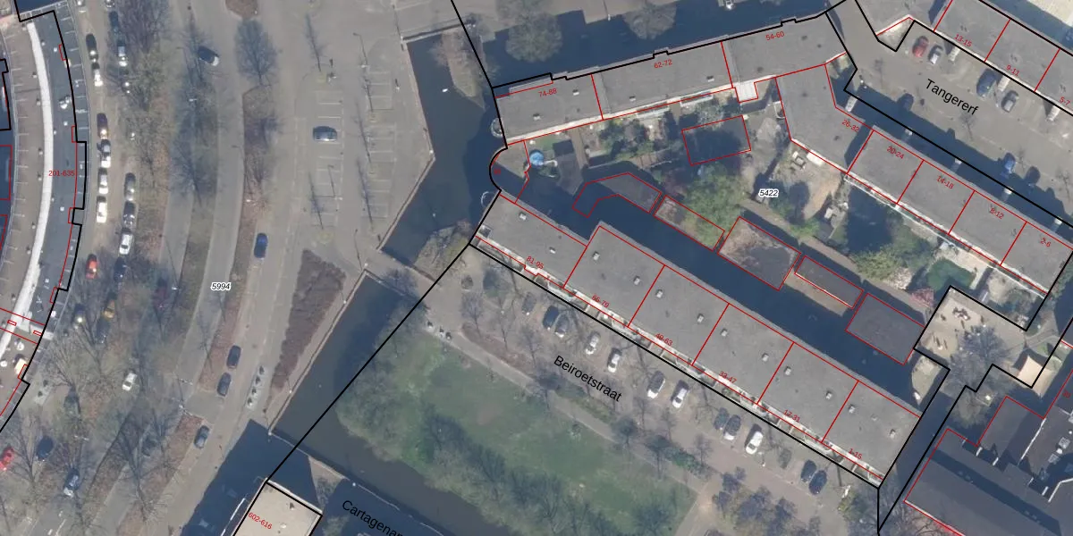 Het perceel waarop Beiroetstraat 89 staat heeft een oppervlakte van 5420 m². Dit is een zeer groot perceel. De perceeloppervlakte wordt geregistreerd door het Kadaster. Gedetailleerde informatie over de maten van dit perceel kunt u vinden in het rapport Kadastrale kaart met maatvoering van Beiroetstraat 89.