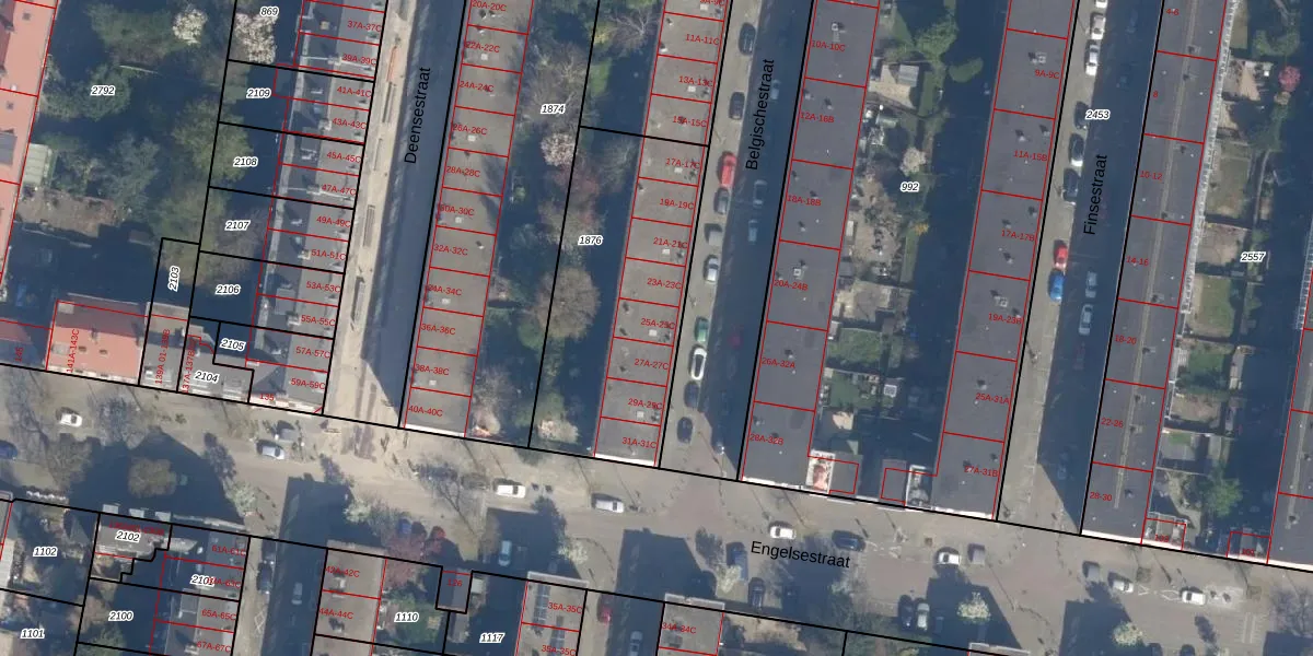 Het perceel waarop Belgischestraat 25-A staat heeft een oppervlakte van 1007 m². Dit is een zeer groot perceel. De perceeloppervlakte wordt geregistreerd door het Kadaster. Gedetailleerde informatie over de maten van dit perceel kunt u vinden in het rapport Kadastrale kaart met maatvoering van Belgischestraat 25-A.