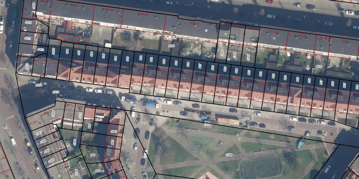 Het perceel waarop Bellamystraat 113 staat heeft een oppervlakte van 156 m². Dit is een middelgroot perceel. De perceeloppervlakte wordt geregistreerd door het Kadaster. Gedetailleerde informatie over de maten van dit perceel kunt u vinden in het rapport Kadastrale kaart met maatvoering van Bellamystraat 113.