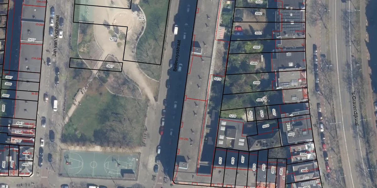 Het perceel waarop Bellevoysstraat 148 staat heeft een oppervlakte van 2143 m². Dit is een zeer groot perceel. De perceeloppervlakte wordt geregistreerd door het Kadaster. Gedetailleerde informatie over de maten van dit perceel kunt u vinden in het rapport Kadastrale kaart met maatvoering van Bellevoysstraat 148.